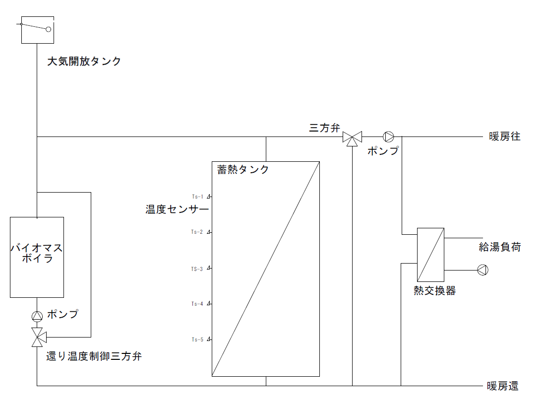 開放タンクが設備されているため、万一沸騰しても安全です。特に、炉内に長時間、木質バイオマス燃料が残りやすい薪ボイラーに適しています。