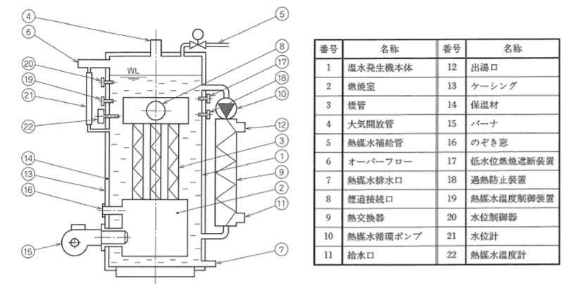 JIS B 8418 付図1 無圧式温水発生機の構造の例